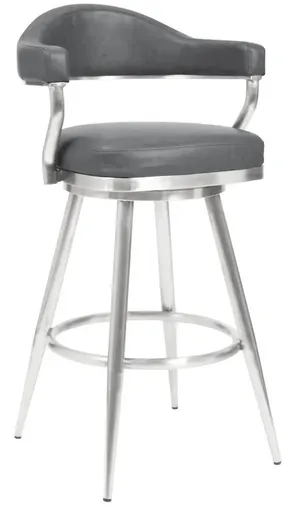 Add a dose of polish and elegance to your home with the Justin Swivel Upholstered Counter or Bar Height Stool with a Metal frame by Armen Living. Stylish and beautifully minimalistic, our barstool is set to make an eye-catching statement in any space. Its floating and beautifully contoured backrest offers contemporary drama.