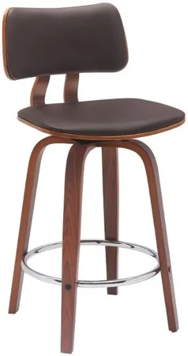 Update your casual meals and cocktail hours with the modern charm and elegance of our Pico Upholstered Swivel Bar or Counter Stool. With bentwood construction, our bar stool features a beautifully curved seat and back, embracing your body with comfort. It is complemented with sculptural bentwood legs to bring signature modern style to your bar or high dining table. Completed with a footrest and upholstered seat, the counter stool promises a comfortable stay. It is upholstered in your choice of faux leather or high-performance fabric to provide easy care and maintenance, best suited to your home. This modern barstool includes a versatile design to complement a kitchen island, pub table, home bar, or adjustable desk. With durable construction, it can be used anywhere from a kitchen to a home office to serve you for years to come. Our counter stool comes with a wonderful 360-degree swivel function. Its smooth gliding system allows you to turn with ease and enjoy your conversation, meals, and cocktail hours to the fullest. The Pico swivel bar or counter stool easily incorporates into any home and is available in your choice of 26-inch or 30-inch seat height. The Pico bar or counter stool is available in your choice of a walnut wood finish with gray, cream, or brown faux leather upholstery and chrome footrest, or a black wood finish with gray faux leather or light gray fabric upholstery and black footrest.