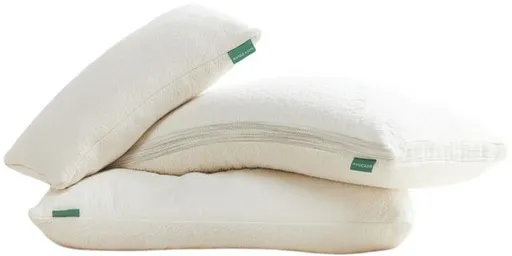 Our lovable natural pillow has adjustable fill, made from GOLS-certified organic latex and GOTS-certified organic kapok. The fill is stuffed within an inner organic jersey cotton liner. The liner lives inside a machine-washable, zippered GOTS-certified organic quilted cotton cover.