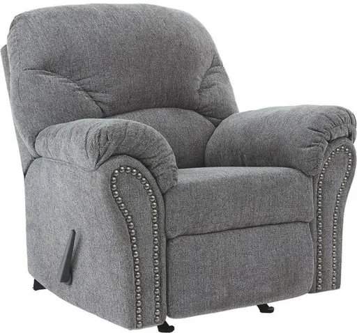 Why sacrifice comfort for style (or style for comfort) when you can have the best of both in this rocker recliner in pewter gray? Elements include a chic divided-back design and pillow top wrapped armrests that make nodding off all too easy. Assembly required for this product.