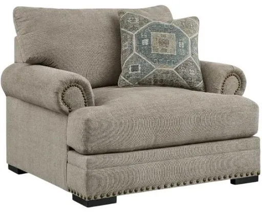 Looking to enhance your home's visual appeal? This oversized chair offers sophisticated design, comfort and elegance with tonal colors, roll arms and nailhead accents. Enjoy optimal coziness as you nestle into luxurious soft upholstery and feather-blend cushions. Perfect for modern spaces, it's just the spot to sit back and relax in style.