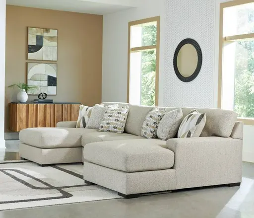 Looking for a centerpiece to complete your effortlessly chic and functional living room? The versatile character and ultra-plush cushions of this double chaise sectional make it an ideal fit for your relaxed lifestyle. Casual and contemporary with track arms and an inviting neutral hue, it pairs easily with your existing aesthetic.