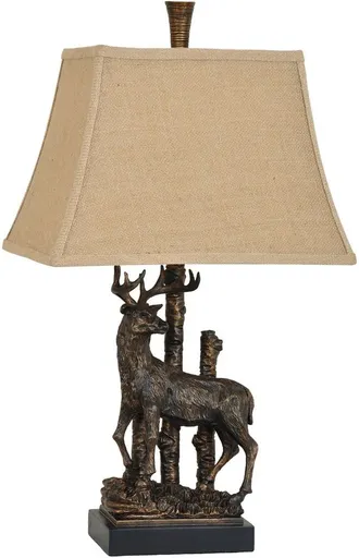 Crestview Collection's Deer Table Lamp exudes rustic and outdoorsy style, making it a perfect addition to cabins, lodges, or any space where you seek to infuse a touch of wilderness-inspired decor. Carved from resin, this piece features a perched buck looking off into the distance amongst trees.