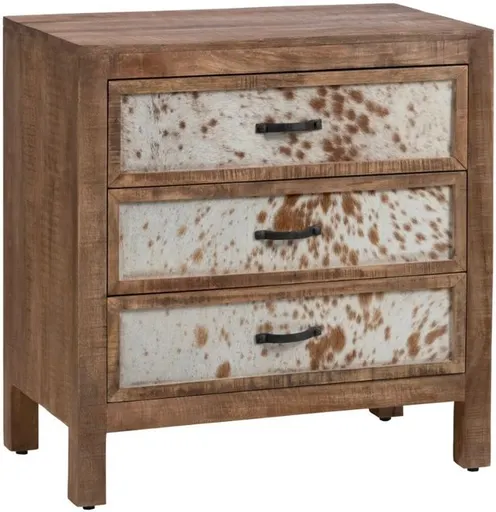 The Crestview Collection Ft. Worth Brown Cowhide 3-drawer Chest has a dark brown and white mango wood finish. With its natural, cowhide drawers, this is a great piece to bring life into any rustic room. The brown and white cowhide compliments the dark brown mango wood nicely, adding texture to the room.