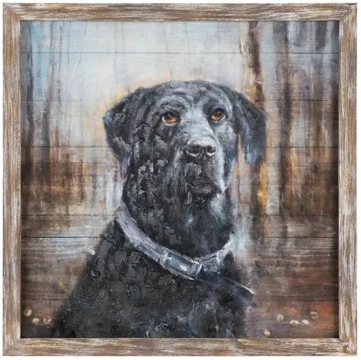 Introducing our Man's Best Friend painting on wood, featuring a beloved black lab dog set against a faded dark field with trees in the background. The painting captures the essence of the great outdoors and celebrates the beauty of nature and our faithful companions.