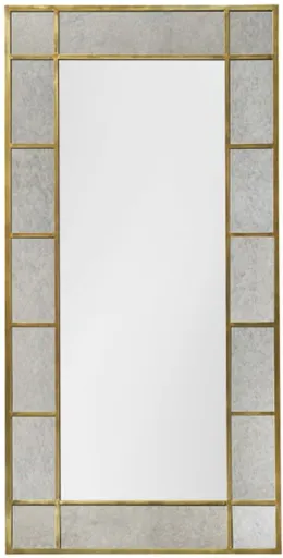 The Crestview Collection Margo Oversized Mirror is 38-inches x 72-inches and is designed to hang either vertically or horizontally. A gold-toned metal frame holds pieces of antiqued glass around a clear, rectangular center mirror adding to its captivating beauty.