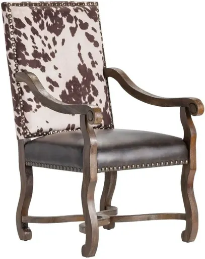 You don't have to "saddle up" to this Crestview Collection Mesquite Ranch Leather and Faux Cowhide Armchair to welcome it into your home. But sitting in it does feel like a commanding post, with a cushioned seat and dark brown birch wood finish in the frame.