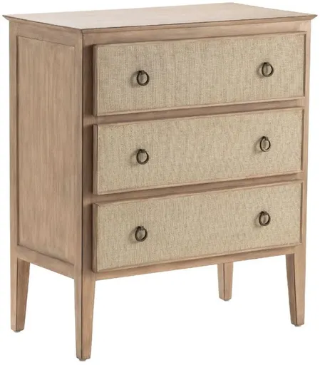 The Crestview Collection Hawthorne Estate 3-drawer Linen-front Chest in Sand Finish will be enjoyed for years to come. This rubberwood and pine chest features a light-brown and light-gray pine wood finish, metal ring drawer pulls, and an extra tall leg height of 9 inches (ground to body).