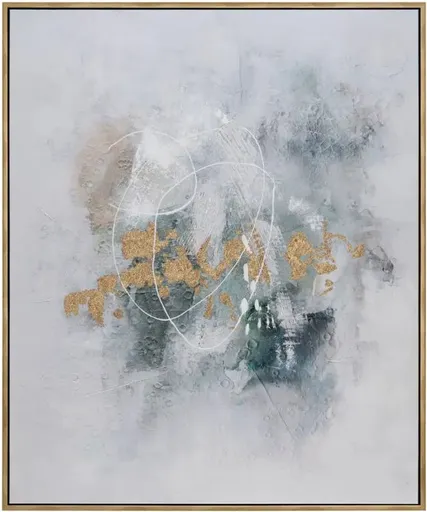 Introducing the stunning oversized contemporary piece of art, a true masterpiece to adorn your walls. This artwork on canvas boasts a heavy texture, adding depth and dimension to its already impressive size. The gold foil embellishments shimmer in the light, catching the eye and adding a touch of glamour to the piece.