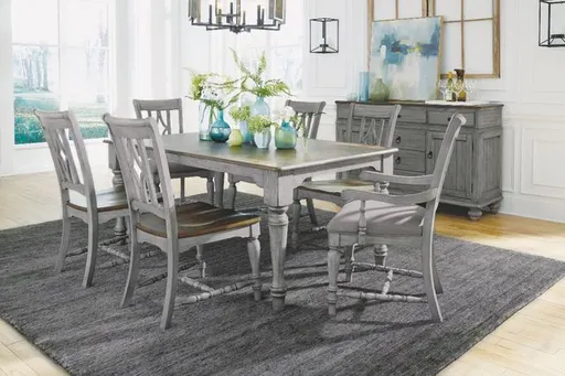 The Plymouth rectangular dining table boasts a shabby chic design with contrasting wood finishes. With an overall whitewash finish accented by a dark tabletop, Plymouth is ideal for those who like a bit of vintage design in their modern lives. Add Plymouth dining chairs to create a complete set, and add in the table leaves for extra space for family and friends. *Light assembly required.