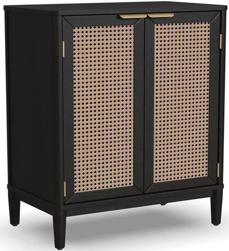 Provide a comforting, nostalgic feel to your dining room or living space with the Brentwood Bar Cabinet. Offering a modern take on mid-century boho style, this bar cabinet features clean lines, brass pulls, and the natural tones and texture of woven cane for a beautiful retro look.