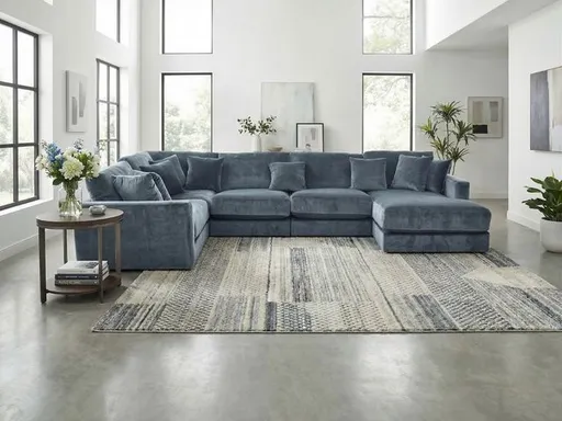 This sectional and chaise combines contemporary style with ultimate comfort. Upholstered in a rich slate-colored fabric, this spacious sectional offers plush seating and a cozy chaise for total relaxation. Its versatile design makes it a perfect centerpiece for any modern living space.