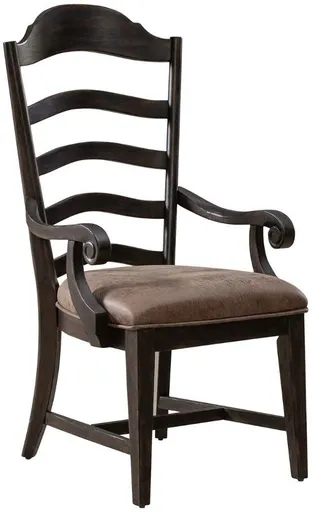 Forget dining out and make your home the best place to enjoy a meal with the Paradise Valley upholstered ladder back arm chair. Crafted with excellence using rubberwood solids, this piece features a saddle brown finish. The paradise valley upholstered ladder back arm chair captures grand opulence with comfortable rustic styling.