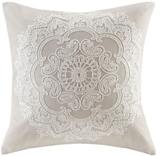 The Harbor House Suzanna Embroidered Cotton Square Pillow adds a beautiful traditional touch to your décor. A large and intricate medallion is beautifully displayed in chain stitch embroidery on a rich taupe ground. Made from cotton faux linen, this decorative pillow has a natural look and feel that will beautifully accent to your bed or sofa. A hidden zipper opening secures the soft filling and givves this square pillow a clean, seamless edge.