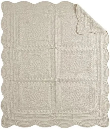 Tuscany is the perfect quilted throw for a new solid look. The decorative stitch pattern pairs easily with your existing décor and will sure to add a new decorative element with the beautiful scalloped edges. This quilted throw is filled with cotton filling and features a polyester microfiber fabrication on the face and the reverse. Its prewash finish gives a worn in appearance to this decorative throw.