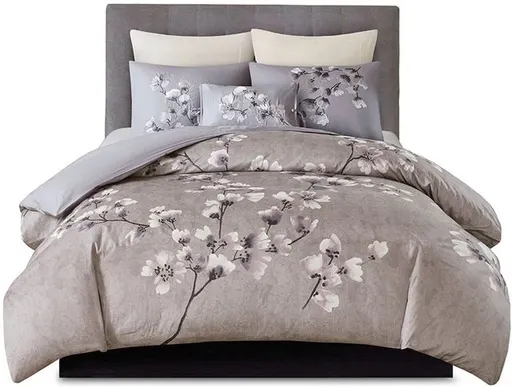 Evoke peace and relaxation in your bedroom with the N Natori Sakura Blossom 3 Piece Cotton Duvet Cover Set. Beautiful printed cherry blossoms, in lilac hues, grace the top of the oversize duvet cover and sakura embroidered shams for a gorgeous floral and globally inspired and cottage look. Made from soft cotton sateen, this cotton duvet cover set is machine washable for easy care. Button closures allow you to place a comforter insert within the duvet cover and hidden tie-backs on the corners help prevent it from shifting.