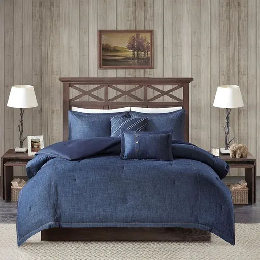 The Woolrich Perry Denim Comforter Set adds the casual comfort of your favorite pair of jeans to your bedroom décor. Overfilled and oversized for incredible warmth and softness, the comforter features a classic denim design on the face and a solid blue cotton percale reverse. The two decorative pillows have removable covers with zipper closures. This denim comforter set is made from 100% cotton and is machine washable.