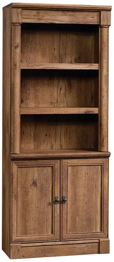 Add timeless beauty and elegant style to your home décor with this library with doors from the Palladia collection. Finished in Vintage Oak and accented with black hardware, this stunning library gives your home the fresh new look you’ve been waiting for.