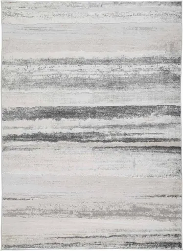 Machine woven high-low abstract design in cream, gold, sage, and shades of gray. Polypropylene/polyester blend. 9mm pile. Backed with jute. Spot clean only. Rug pad recommended.