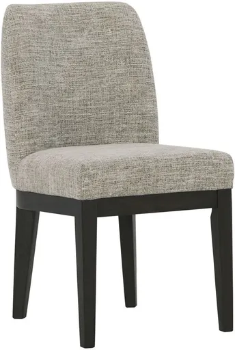 Dressed to thrill, this simply stunning armless dining chair offers a high-design look at a down-to-earth price. Ultra sleek lines are accentuated with a dark waxy brown oak-tone finish that’s so easy on the eyes. Suitably upholstered in a tweed-like neutral fabric, the softly contoured back design is tailor-made for comfort.