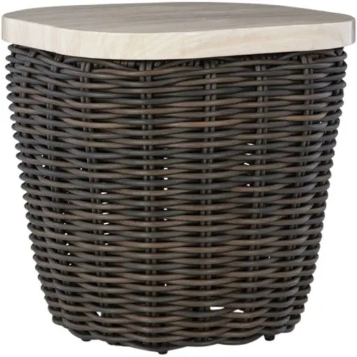 Add luxury, convenience and durability to alfresco fun. This outdoor end table captures the textural beauty of wicker while withstanding the elements, from rain to shine. With its marble-look aluminum top, you can stylishly keep your pool-side drinks or reads in reach.