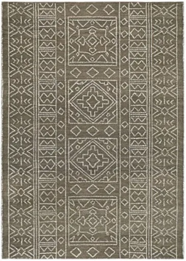 Hand tufted and crafted with a plush wool pile, this area rug is a modern take on a classic design. An Aztec-inspired pattern captures the imagination, while hues of brown and ivory keep the look grounded and upscale. Artfully designed, this rug fits right in with boho or vintage casual aesthetics.