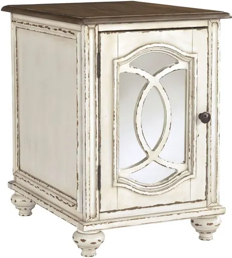 3. Signature Design by Ashley® Realyn Brown Cabinet Door Chairside End Table with White Base