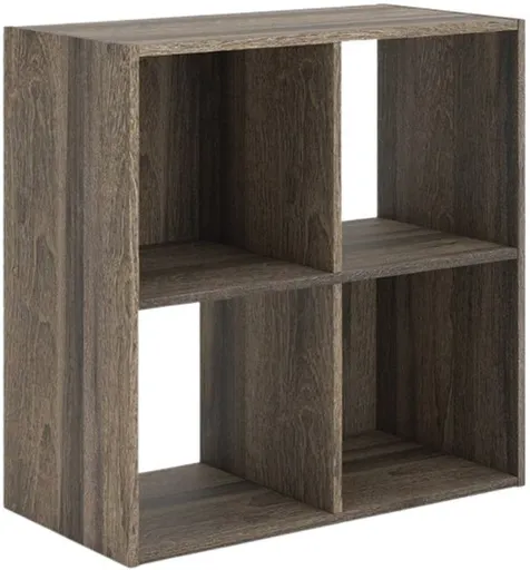 Your modern sanctuary is within reach. The simply stylish design of this four-cube organizer is complemented with a weathered brown finish for added versatility. Its assorted cubbies provide handy storage space while also acting as a chic spot to display decor.