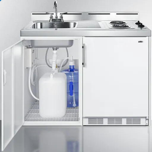 Summit brings innovation and convenience to non-traditional kitchen spaces with a new line of all-in-one kitchenettes designed for use in settings without standard water lines. Great for efficiency housing, off-grid living, and temporary or basement kitchens.