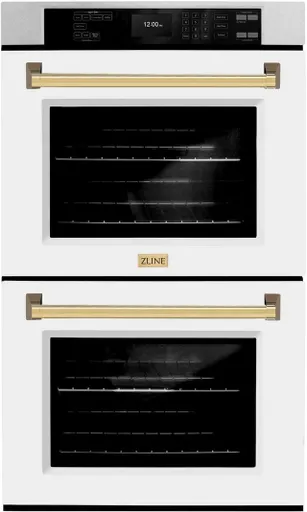 ZLINE Autograph Edition Professional 30" Satin Stainless Steel Double Electric Wall Oven with White Matte Doors and Polished Gold Accents | Furnzy.com - Shop local furniture stores in one place