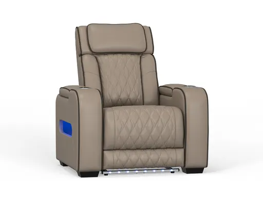 The Alan Power Leather Recliner combines sleek style with advanced comfort features, making it the ultimate seat for relaxation. Available in three rich color options: Black with light gray piping, Bone with charcoal piping, or Saddle with black piping. Upholstered in top grain leather, this recliner offers both durability and luxury. The diamond stitching on the seat back and cushions provides a refined, tailored detail, while the extended footrest and zero gravity mechanism ensure complete body support.