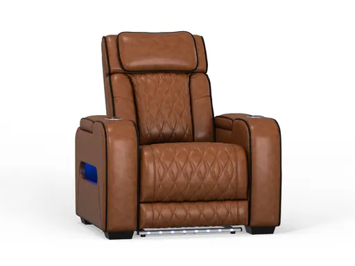 The Alan Power Leather Recliner combines sleek style with advanced comfort features, making it the ultimate seat for relaxation. Available in three rich color options: Black with light gray piping, Bone with charcoal piping, or Saddle with black piping. Upholstered in top grain leather, this recliner offers both durability and luxury. The diamond stitching on the seat back and cushions provides a refined, tailored detail, while the extended footrest and zero gravity mechanism ensure complete body support.