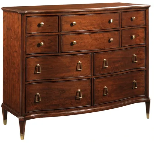 Combines the elegance of cherry wood with walnut inlays, creating a refined and classic piece. It offers ample storage space with drawers for organizing clothing or personal items. The sophisticated wood finishes and intricate detailing make it a timeless addition to any bedroom or living area.