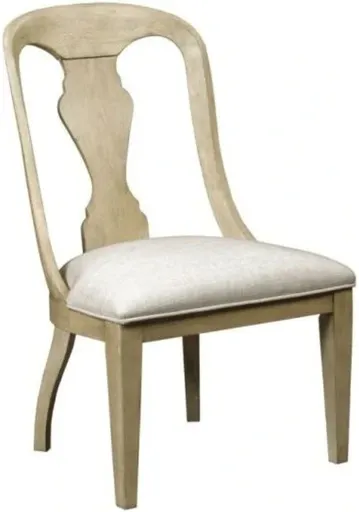 The American Drew® Litchfield Whitby Driftwood Upholstered Side Chair features Beautifully shaped side chair with center splat in a unique driftwood finish with an upholstered ivory seat. This chair fits beautifully into spaces seeking a laid-back, elegant feel whether by the coast or in the city.