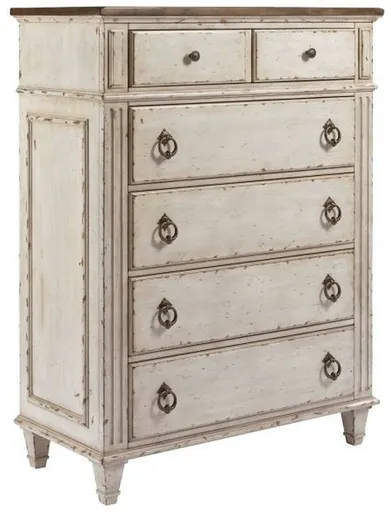 The main vertical storage piece in Southbury from American Drew® is the Drawer Chest. To maximize that storage, it features five full-width drawers. As an added touch, the bottom drawer is cedar-lined.