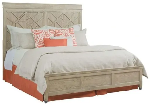 Vista is a casual transitional collection, utilizing everyday transitional styling and incorporating it with some seemingly casual elements and accent pieces. King reversible wood or seagrass headboard panel in this bed will work in any setting. Beautiful grid work to finish off the look. Also available in queen and California king sizes.