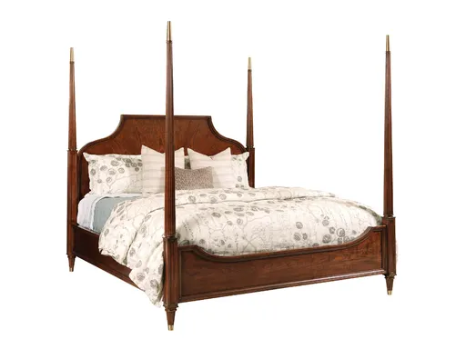 The Artesian Post Bed brings a touch of antique elegance to your bedroom. Available in king and queen sizes, this four-poster bed is crafted from rich cherry and walnut veneers, finished in a warm brown tone that highlights the prominent wood grain. The striking posts are adorned with gold-tipped hardware at the top and bottom, enhancing the bed’s sophisticated antique design. The clean lines and intricate detailing make this bed a timeless centerpiece, perfect for traditional and vintage-inspired spaces. Transform your bedroom with the stately beauty of the Artesian Post Bed, where classic craftsmanship meets luxurious style.