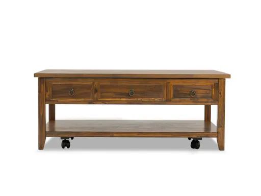 The Bakersfield Table collection offers a blend of functionality and rustic charm to your living space. Available in cocktail, end table, or accent table options, these brown wooden tables are designed to enhance both style and practicality.The Bakersfield Cocktail Table features three drawers, an open shelf at the bottom, and wheels for easy mobility. Additionally, the cocktail table boasts a lift-top mechanism, providing versatile usage options. The End Table includes a drawer at the top and an open shelf at the bottom, offering convenient storage. The Accent Table further enhances functionality with a drawer and an open hatch at the back, equipped with a power outlet and USB ports.Elevate your living room with the Bakersfield Table collection, where thoughtful design and thoughtful features create a versatile and inviting atmosphere.