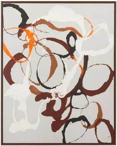 The Carnival Framed Canvas brings modern artistry to your walls with its warm, inviting palette and abstract design. Neutral tones are beautifully accented by rich rust hues, creating depth and visual interest.