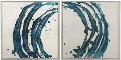 3. Bassett Mirror Embellished Blue Circle 2-Piece Framed Print Wall Art Set
