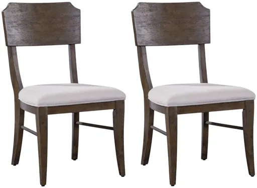 The Kellan Dining Chair features a modern and transitional design with such features as clip corner back design. The wood frame is finished in a cerused charcoal with chocolate undertones. The upholstered seat features a performance polyester fabric in an off-white color.