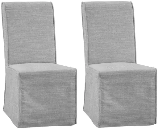 The Mackie Dining Chair brings a touch of timeless elegance to your dining space. Wrapped in a faux slipcover with linen-like performance fabric in a soothing dove color, this chair combines classic style with modern functionality.