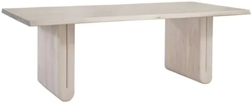 Introducing the Nadia Dining Table, a celebration of modern coastal design. Crafted from bleached solid mango, it features a live edge top and soft rounded edges on the base. The subtle white-wash finish adds serenity to your space. Mango wood boasts a naturally textured finish with a charming distressed effect.