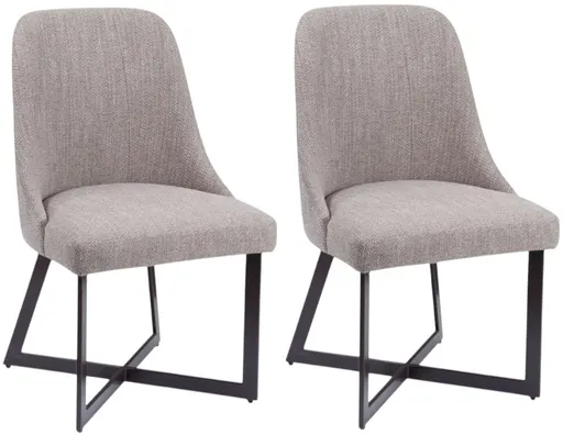 The Trucco Side Chair is a modern transitional design with angled legs and an X detail base. Finishes include bronze powder coated legs and a taupe upholstered solid back and seat. Drive in floor glides on the leg bottom and high density foam seat cushion are added features.