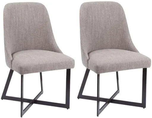 The Trucco Side Chair is a modern transitional design with angled legs and an X detail base. Finishes include bronze powder coated legs and a taupe upholstered solid back and seat. Drive in floor glides on the leg bottom and high density foam seat cushion are added features.