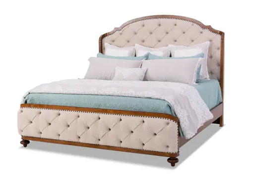 The Berkshire Upholstered Bed brings a touch of casual European traditional style to your bedroom sanctuary. Available in King or Queen size, this bed features a distinctive shelter design that frames tufted headboard and footboard elements. The upholstery is elegantly trimmed with burnished nail-head detailing, adding a refined touch to the overall aesthetic. Crafted from high-quality materials, including Hickory Veneers and Rubberwood Solids, the Berkshire Upholstered Bed boasts durability and warmth. The Warm Cognac finish enhances the richness of the wood, creating a cozy and inviting atmosphere in your bedroom. Immerse yourself in the timeless design and comfort of the Berkshire Upholstered Bed, where European tradition meets modern elegance. Elevate your bedroom with this exquisite piece, turning your space into a haven of relaxation and sophistication.