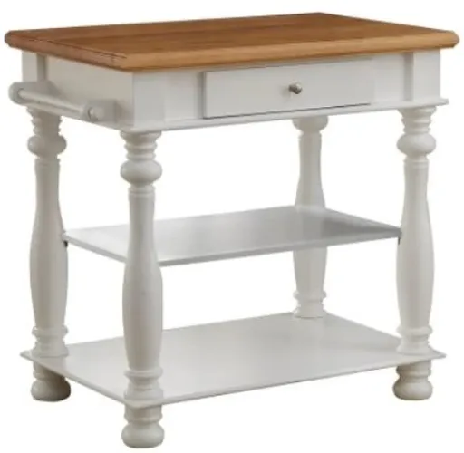 Enhance your kitchen's style and functionality with the Avondale Kitchen Island in white. Featuring a built-in cutting board, this versatile piece makes meal preparation a breeze. Generous shelf space offers ample room for cookware, dishes, or decorative accents, while the convenient drawer keeps utensils and other essentials neatly organized.