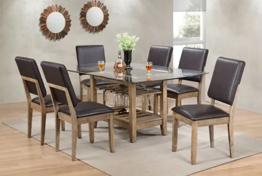Complete your dining room idea with this Cordova Dining Table. Features a glass top with 2 layer slatted shelves, this piece will surely transform the hollow of any dining area into something spectacular and will definitely add style to your space.
