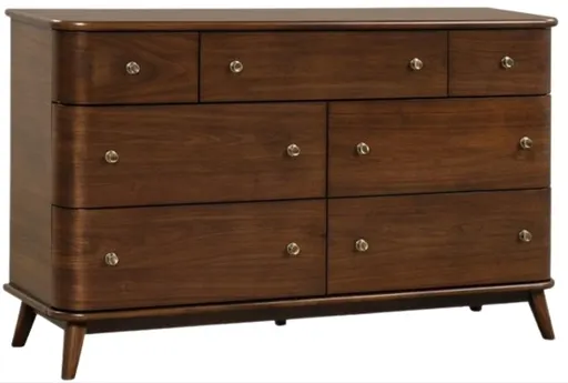 Elevate your bed room with this Dorval Dresser from Bernards. Shown in a brown finish, this dresser features 9 drawers that provides storage for personal items and can be a decorative piece in the room. Make a bold statement by incorporating this furniture to your home.