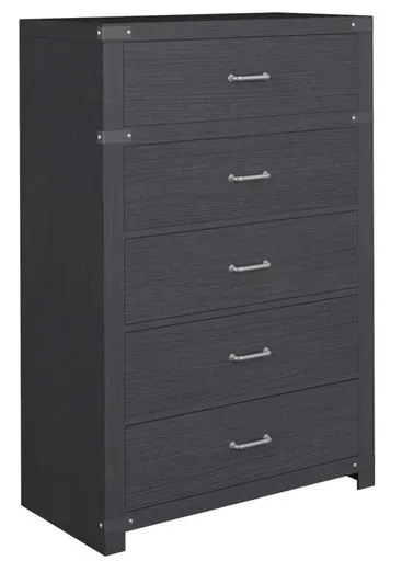 The Fairborne 5-Drawer Chest offers a stylish storage solution with a sleek, modern design. Its dark wood finish is complemented by metal hardware, creating a contemporary yet timeless look. With five spacious drawers, this chest provides ample vertical storage for clothing and linens, making it ideal for compact spaces.